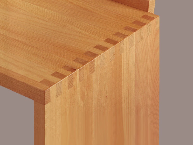 Offen für alle Beziehungen! Die Holzbank SD05 in der klassischen Form aus massivem Holz mit traditionellen Fingerzinken ist in (fast) allen Wunschmaßen zu haben.