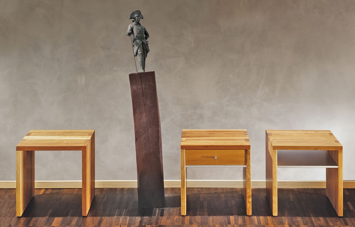 Fritzi ist ein Hocker, ein Abstelltisch, ein Nachttischchen, ein Kindertisch – und preußisch einfach.
